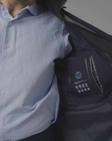 The Hybrid Blue suit was engineered by our technicians in the Netherlands with their sixty years of tailoring expertise and is produced at our longterm partner in China with whom we have had a relationship for 20 years, The choice of production in China is simple because only there a symbiosis of formal and sportswear tailoring can be made.